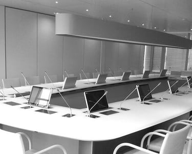 نظام ميكروفون المؤتمرات هو إعداد صوتي احترافي مصمم لتعزيز التواصل أثناء المؤتمرات أو الاجتماعات أو العروض التقديمية