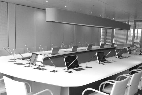 يمكن أن تكون أنظمة ميكروفونات المؤتمرات سلكية أو لاسلكية حسب المتطلبات المحددة للحدث