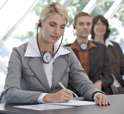 يتضمن هذا الحل عادةً استخدام برمجيات ومكونات أجهزة متقدمة لتسهيل الترجمة الفورية والترجمة الفورية للكلمات المنطوقة أو المكتوبة وهي تُستخدم عادةً في المؤتمرات الدولية واجتماعات العمل وغيرها من الأماكن التي يكون فيها التواصل متعدد اللغات ضرورياً